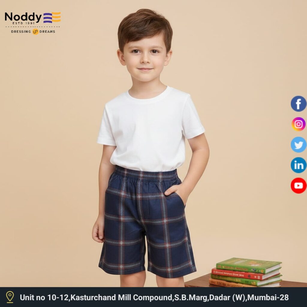 Elevate your child’s wardrobe with our 100% breathable cotton boys’ shorts. Thoughtfully designed for active lifestyles, these shorts from Noddy’s Fresh Threads collection combine premium materials with expert craftsmanship. The soft elasticated waistband provides a snug yet comfortable fit, ensuring flexibility for every jump, run, or climb your little one embarks on.